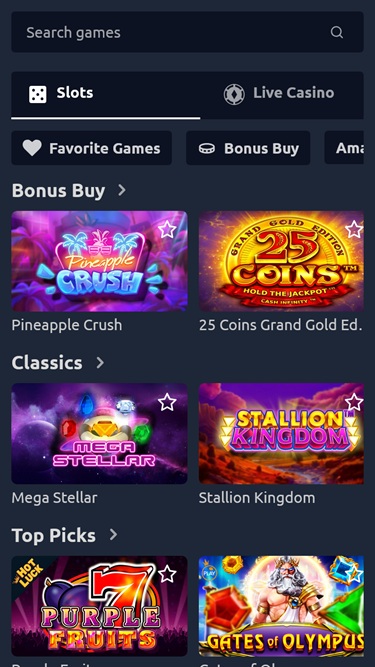 كما ذكرنا سابقًا، يتعاون المشغل مع بعض من أفضل مزودي برامج الكازينو عبر الإنترنت، ويستضيف مكتبة ألعاب غنية تتضمن عناوين من الدرجة الأولى في فئات الألعاب الشهيرة: