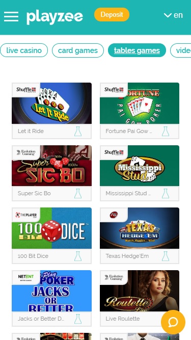 بالإضافة إلى ألعاب الكازينو القياسية، يقدم كازينو Playzee ألعاب الموزع المباشر لعملائه.
