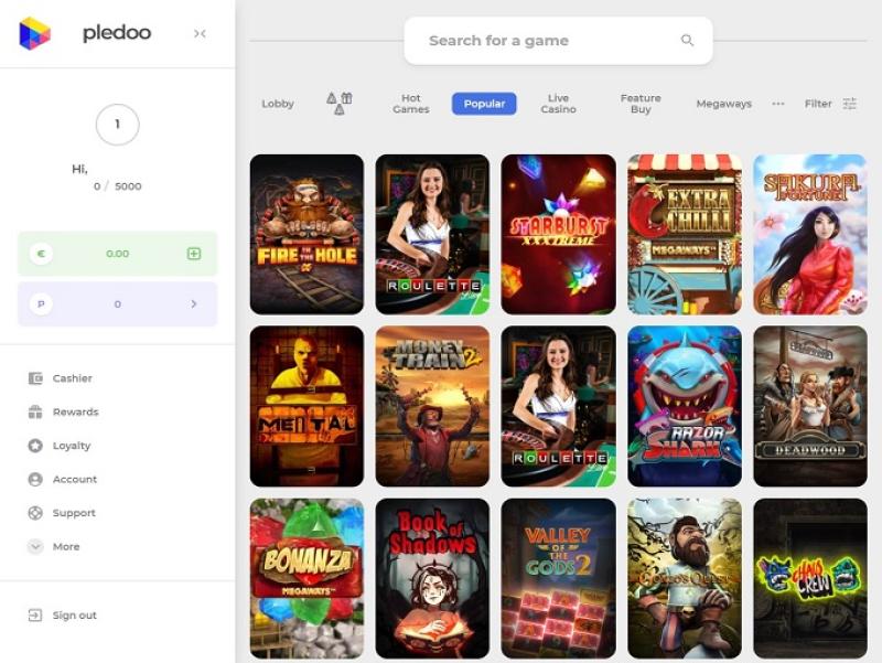 Hotline 2، Elven Princesses، Lucky Neko، Poseidon's Rising، Queen of Bounty، Temple of Dead، Tomatina Bingo، Infectious 5 xWays، Book Of Skulls، Book Of The Divine Reloaded، xWays Hoarder xSplit، Ancient Fortunes: Poseidon، Stacked، King of Cats، Wild Bandito، Beef Lightning، Sun of Fortune، Back To Venus، Primal Hunt، Arabian Spins، Book of Oz، Jesters Joy، 9 Pots of Gold، 9 Masks of Fire، Take Olympus، Piggy Riches، Dead or Alive، Fruit Shop Megaways، Booming Seven Deluxe، Space Wars، Fruit Zen، Sin City Nights، Take Santa's Shop، Chilli Pop، Hat Trick Hero، Mr. Macau… هذا والعديد من عناوين ماكينات القمار بالفيديو الأخرى هي جزء من مجموعة ألعاب ماكينات القمار فائقة الثراء التي تقدمها كازينو Pledoo.