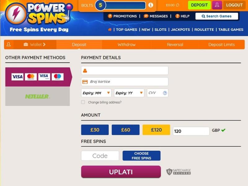 يعمل موقع Power Spins بواسطة Microgaming, Net Entertainment, Playtech, 1x2gaming, Big Time Gaming, EYECON, Play'n GO, Quickspin, Rabcat, Realistic Games, Red Tiger Gaming, IGT, Gameburger Studios, Shuffle Master, Games Global, Ash Gaming, Bally Technologies, Blueprint Gaming, Leander Games, WMS, Gaming Realms, SG Interactive, SUNfox Games and CORE Gaming ، وتتوفر ألعاب الكازينو عبر منصة لعب فوري عبر الإنترنت، تُحمّل مباشرةً من خلال متصفح الإنترنت المُفضّل لديك. كما يتوافق الموقع مع الهواتف المحمولة، ما يعني إمكانية اللعب عبر هاتفك الذكي أو جهازك اللوحي.