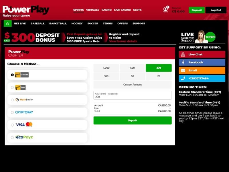 يدعو مشغلو كازينو PowerPlay اللاعبين من أونتاريو وكندا حتى يتمكنوا من الحضور والاطلاع على مجموعتهم المذهلة من ماكينات القمار عبر الإنترنت وألعاب الطاولة والمراهنات الرياضية والكثير من الألعاب الترفيهية الأخرى.