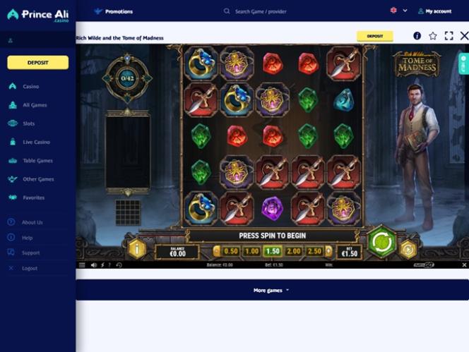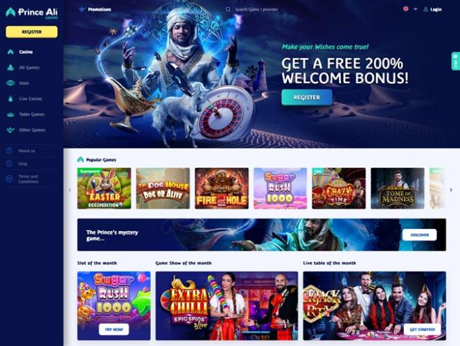 كازينو برينس علي هو كازينو إلكتروني مسجل بموجب قوانين كوراساو، ومرخص ومنظم من قبل شركة Antillephone NV. يركز هذا الكازينو على المقامرين القادمين من كندا وألمانيا.