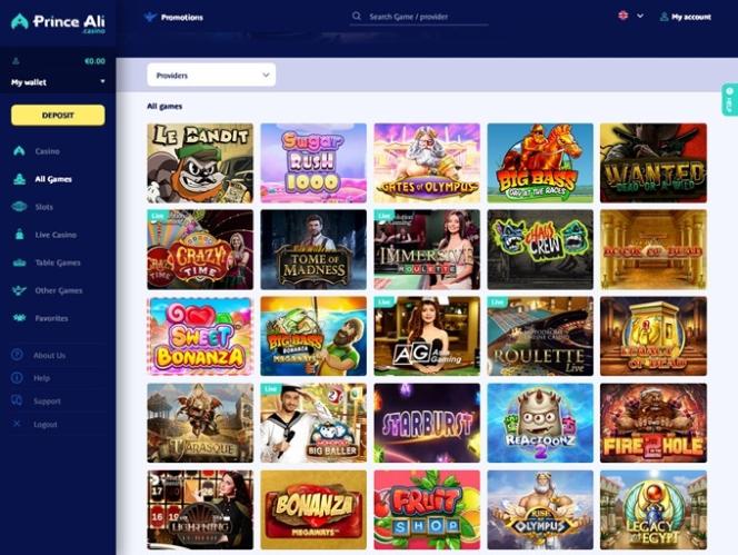 يضم موقع PrinceAli قائمةً تضمّ موردي ألعابٍ من أسماءٍ مرموقةٍ في هذا المجال. ويضمن التعاون مع هذه الأسماء الكبيرة عادةً أعلى جودةٍ للمحتوى وتنوّعًا في أنواع الألعاب.