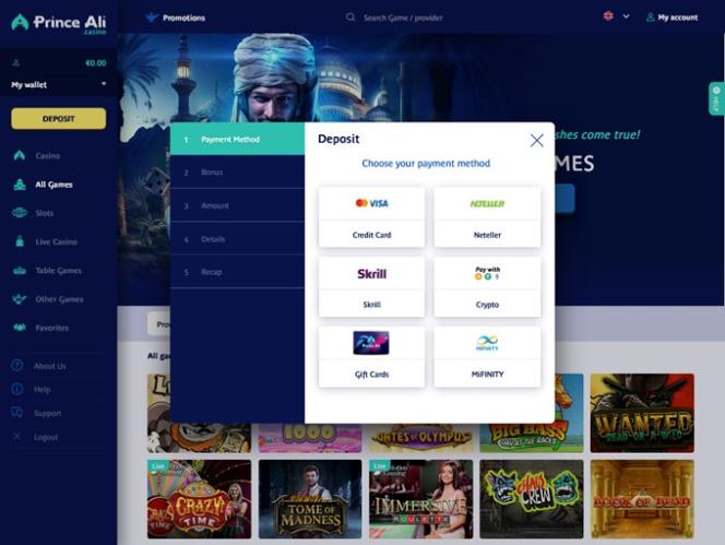 خيارات الخدمات المصرفية في PrinceAli Casino