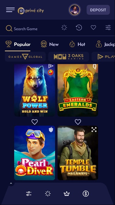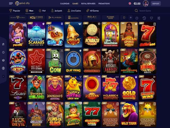 يقدم كازينو Prive City للاعبيه مجموعة مذهلة من ماكينات القمار عبر الإنترنت للاختيار من بينها، مع العناوين الأكثر شعبية مثل Thunderstruck، وRoyal Coins 2، وGreen Chilli، وBreak Da Bank، وSun of Egypt 2، وHit the Gold، وRuby: Hold & Win، وPearl Diver.برنامج نقاط المنافسة