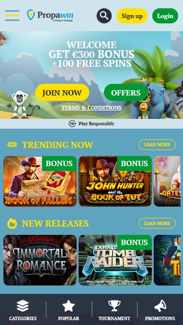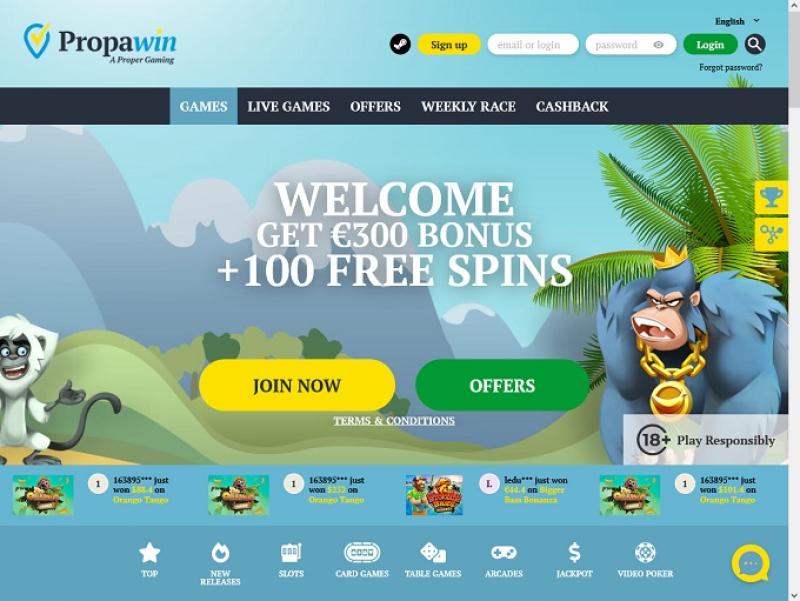 PropaWin Casino هو موقع مراهنة عبر الإنترنت تم إنشاؤه في عام 2015 بواسطة Highweb Ventures NV. يحاول الكازينو جلب المتعة إلى شاشتك من خلال تنفيذ مكتبة متنوعة من الألعاب وأوقات صرف معقولة للأرباح ودعم العملاء الممتاز المتوفر على مدار الساعة ويقدم حلولاً سريعة لأي مشكلات قد تنشأ.معلومات الكازينو