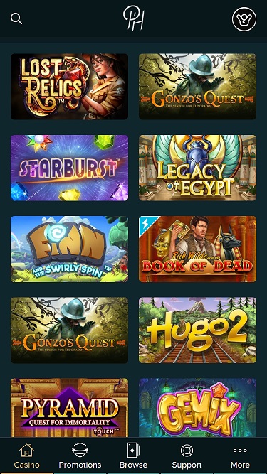 يتم تشغيل Prospect Hill Casino بواسطة EYECON, Play'n GO, Pragmatic Play, Blueprint Gaming, Reel Time Gaming, Wild Streak Gaming and Lucksome Gaming ، ويتم توفير ألعابه عبر منصة تعتمد على الويب بالإضافة إلى موقع محمول يسمح باللعب عبر الهواتف الذكية والأجهزة اللوحية.خيارات الخدمات المصرفية في Prospect Hall Casino