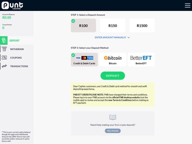 خيارات الخدمات المصرفية في Punt Casino