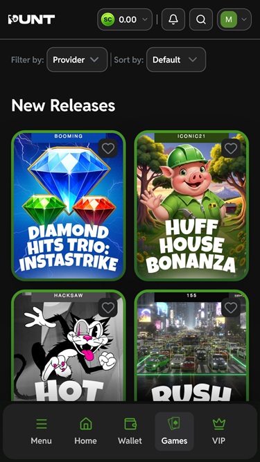 بالنسبة للمبتدئين، من المهم أن تعرف أنه سيكون بإمكانك لعب الألعاب من مقدمي خدمات أسطوريين مثل Relax Gaming و Pragmatic Play و Evoplay و BGaming وHacksaw Gaming بينما تكون قادرًا أيضًا على تجربة الألعاب التي أنتجها العديد من المطورين الأصغر مثل Max Win Gaming وWild Streak Gaming وFour Leaf Gaming.