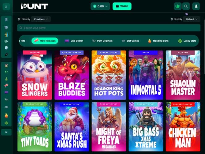 وأخيرًا وليس آخرًا، يجب أن نذكر الألعاب الأصلية الحصرية من Punt، وهي قائمة قصيرة نسبيًا من الألعاب التي تقدمها العلامة التجارية حصريًا، بما في ذلك Blackjack وDice وLimbo وLater Gator وClover Cross.