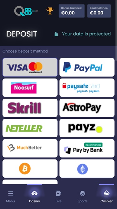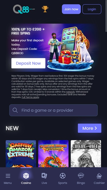 هذا الموقع مُخصص للاعبين من المملكة المتحدة وكندا والنرويج وفنلندا ونيوزيلندا، ومنصته متاحة باللغات الإنجليزية والفرنسية والفنلندية واليابانية والبرتغالية. واجهة الكازينو سهلة الاستخدام وبسيطة، ولكن من الناحية الرسومية، قد تكون أكثر واقعية بعض الشيء، حيث يستخدم Q888Bets نفس منصة الكازينو التي تستخدمها العديد من العلامات التجارية الشهيرة الأخرى للمقامرة عبر الإنترنت .
