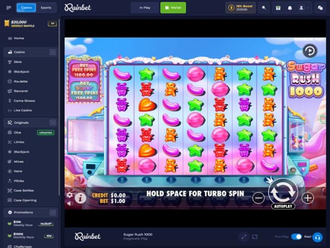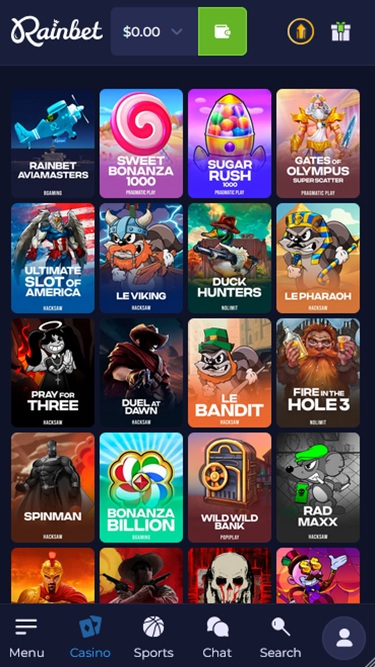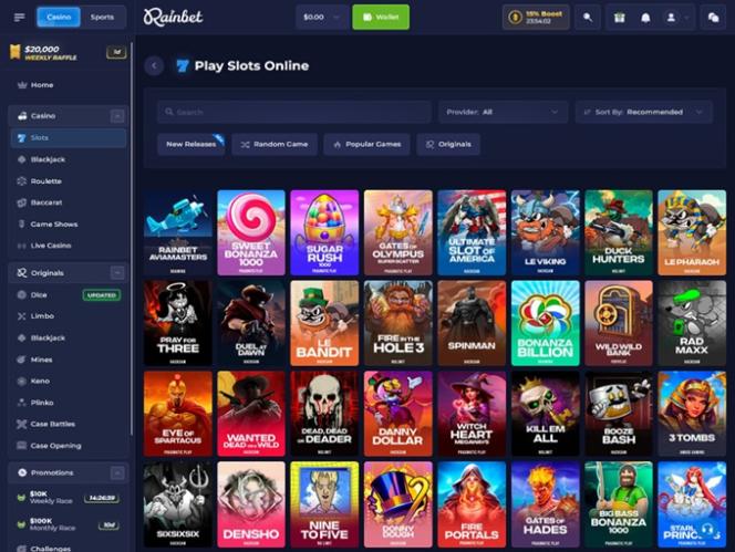 كما ذكرنا سابقًا، تقدم Rainbet مجموعة واسعة من ألعاب الكازينو. تشمل هذه المجموعة أيضًا ألعابًا من شركات معروفة مثل Pragmatic Play و Relax Gaming وHacksaw Gaming وPlay'n GO و Red Tiger Gaming وSpinomenal وEndorphina و Onlyplay وBooming Games وغيرها الكثير!