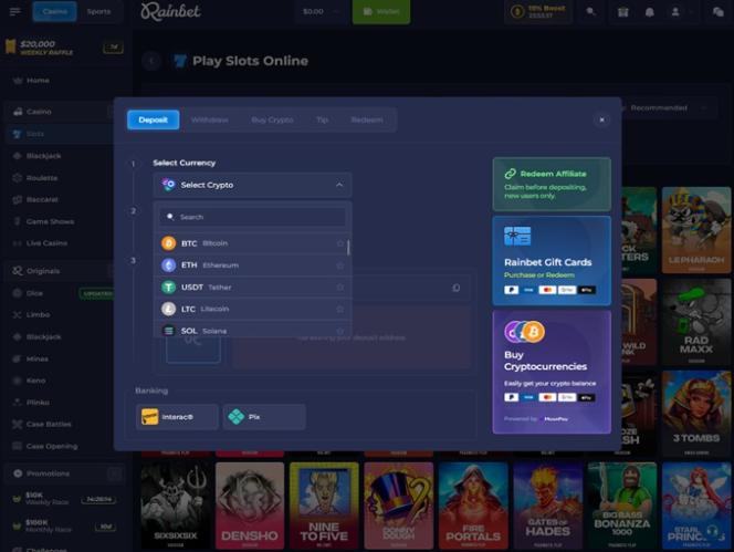 لا تقلق، على الرغم من أن التركيز ينصب على العملات المشفرة، فإن Rainbet تقدم أيضًا خيارات دفع غير مشفرة - Interac و Pix على سبيل المثال!