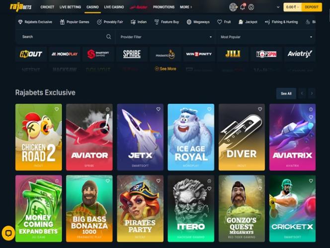 يتم تضمين جميع ألعاب الكازينو عبر الإنترنت في الفئات التالية: الألعاب الشعبية، العادلة بشكل مؤكد، الهندية، الصيد والصيد، 7 Feature Buy، Megaways، الفاكهة، الجائزة الكبرى.
