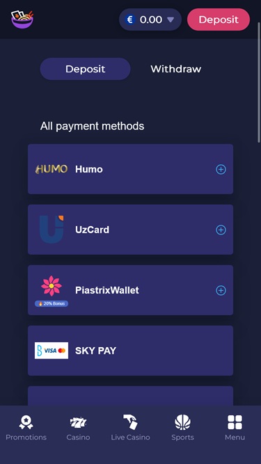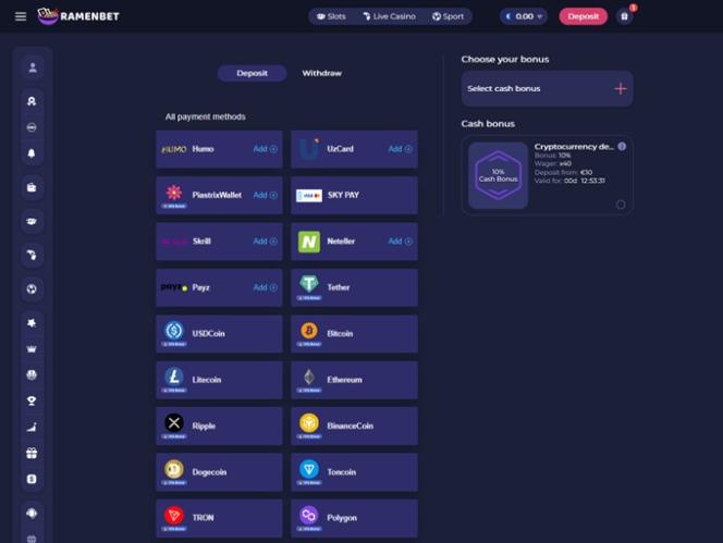 خيارات الخدمات المصرفية في Ramenbet Casino