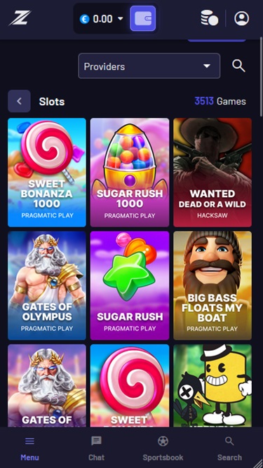 Sweet Bonanza 1000، Sugar Rush 1000، Wanted Dead or a Wild، Gates of Olympus، Big Bass Floats My Boat، Le Bandit، Keep 'Em، Kenneth Must Die، Beam Boys، Sweet Kingdom، Fist of Destruction، Mental، SixSixSix، Tai the Toad، Starlight Princess، Retro Tapes، و Fruit Party.