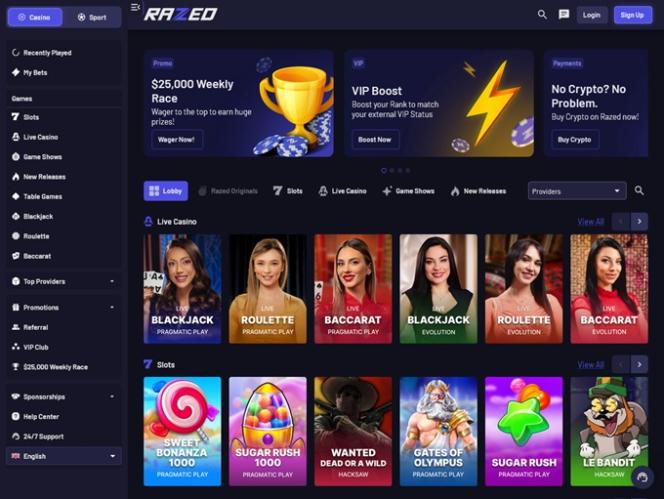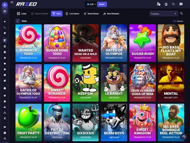 لهذا السبب، من الضروري جدًا لكازينوهات مثل Razed أن تزود اللاعبين بمكتبات ألعاب وأنشطة شاملة. ويمكنهم تحقيق ذلك من خلال عرض العديد من موفري البرامج على مواقعهم الإلكترونية، مما يضمن تنوعًا وأصالةً كبيرين بين جميع المنتجات المتاحة.