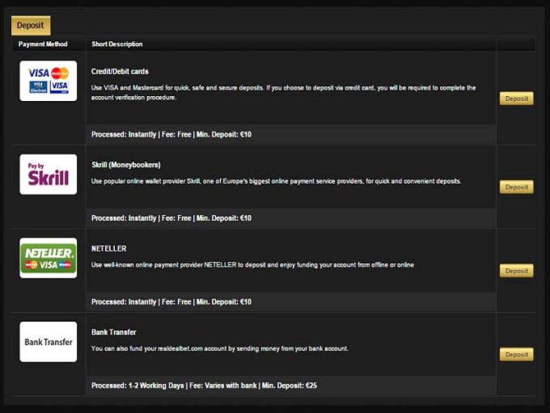Real Deal Bet هو موقع مراهنات إلكتروني انطلق عام ٢٠١٥. يقدم الموقع كازينو إلكترونيًا وقسمًا للمراهنات الرياضية، وتديره شركة Zapzap Marketing Limited. حتى الآن، حصل الكازينو على تقييمات متوسطة من اللاعبين، الذين أشادوا بمكتبة الألعاب الضخمة التي يقدمها، لكنهم انتقدوه لغياب برنامج الولاء وارتفاع متطلبات الرهان على المكافآت.