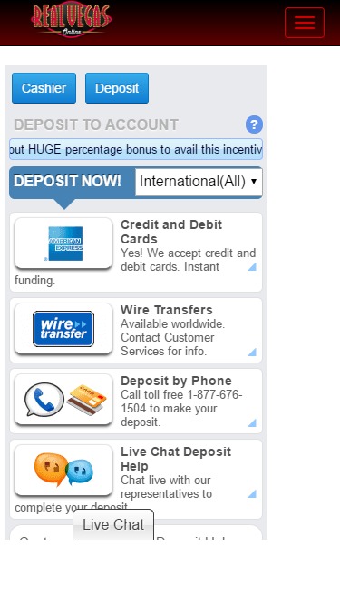 يتم تشغيل كازينو Real Vegas Online بواسطة Real Time Gaming ، مما يمنحه مكتبة من الألعاب التي يمكن الوصول إليها من خلال برنامج قابل للتنزيل بالإضافة إلى منصة تعتمد على الويب تتيح لك لعب الألعاب مباشرة من خلال متصفح الويب الخاص بك.خيارات الخدمات المصرفية في Real Vegas Online
