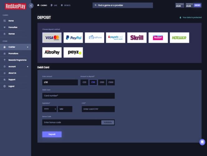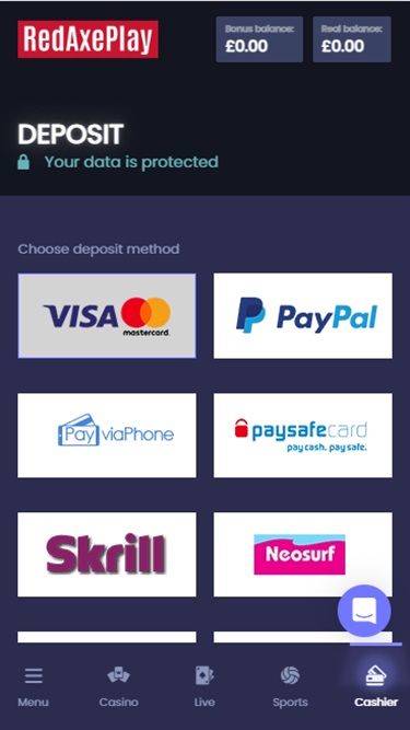 خيارات الخدمات المصرفية في RedAxePlay Casino