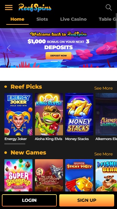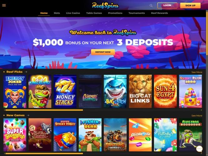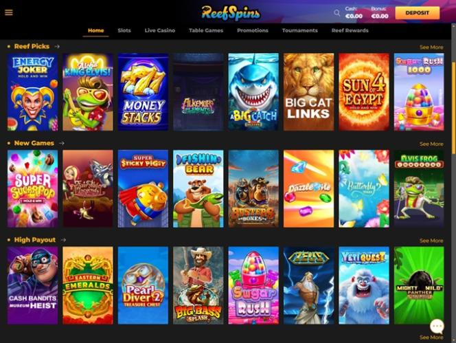 ليس المظهر الجذاب وحده ما يجذب اللاعبين إلى كازينو ReefSpins. يقدم هذا الكازينو أيضًا مجموعة واسعة من ألعاب الكازينو المتميزة، بما في ذلك ماكينات القمار الإلكترونية، وألعاب الموزع المباشر، وألعاب الطاولة التقليدية. سيستمتع اللاعبون بمجموعة متنوعة من الألعاب، مما يتيح لهم تجربة جميع أنواع المقامرة الإلكترونية.