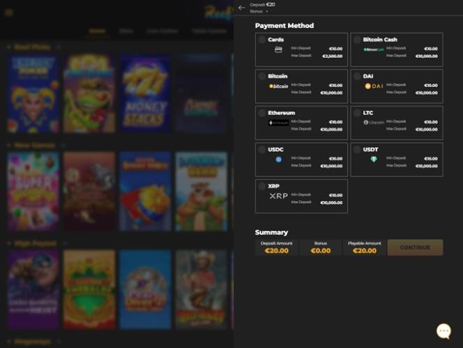 يشتهر كازينو ReefSpins أيضًا بانفتاحه على قبول طرق الدفع الحديثة، مثل العملات المشفرة. إذا لم تجرّب العملات المشفرة بعد، يمكنك سحب وإيداع أموالك باستخدام العديد من العملات المشفرة والخيارات المصرفية التقليدية.