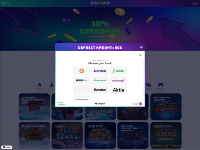 لا يُقدّم هذا الكازينو الإلكتروني الكثير من المكافآت والعروض الترويجية. يُمكن للاعبين الجدد الاعتماد على مكافأة ترحيبية واسترداد نقدي مع جميع اللاعبين الآخرين. كما يُقدّم الكازينو مكافآت أسبوعية وعروض "الفوز والخسارة". يحتفظ كازينو "Reload" بالحق في منع أي لاعب من المشاركة في أي نوع من العروض الترويجية.