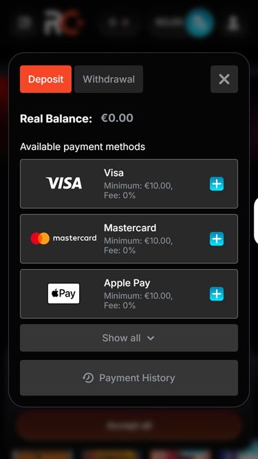 💰 الحد الأدنى للإيداع€10/ €30 (Bitcoin)