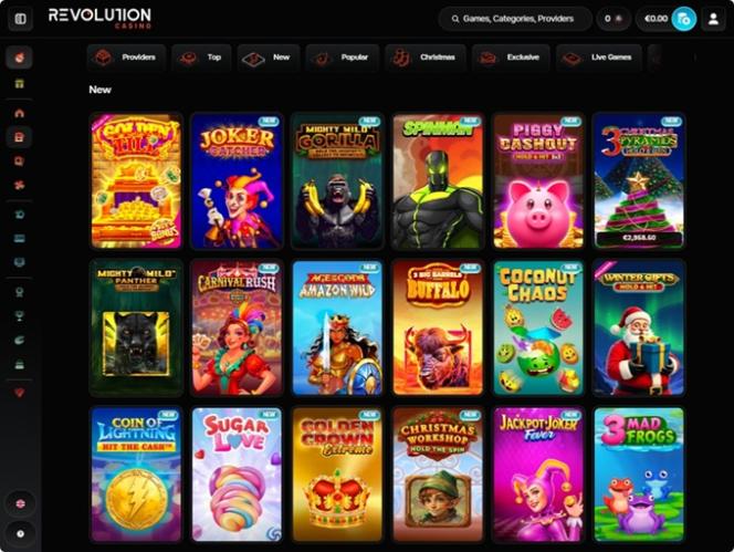بعد أن استعرضنا شكل منصة كازينو ريفولوشن وتجربة اللعب عليها، دعونا نركز على أنواع الألعاب التي يمكنك توقع رؤيتها هنا. نعلم جميعًا أن وجود العديد من مزودي البرامج في كازينو معين يعني توفر خيارات ألعاب متعددة.