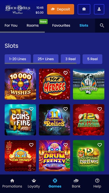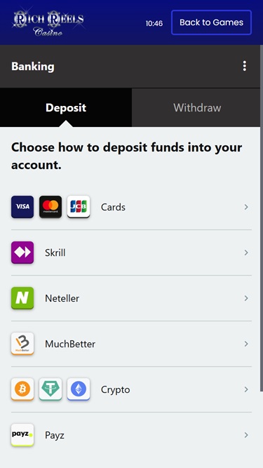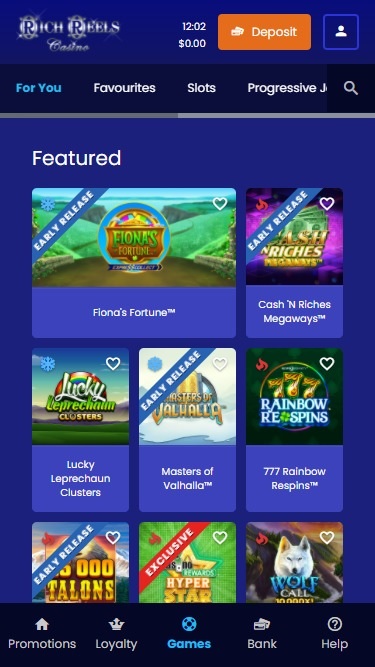 تجد أدناه قائمة العروض الترويجية المقدمة حاليًا في كازينو Rich Reels.