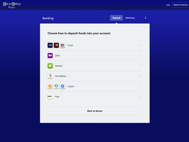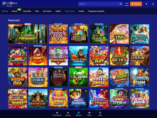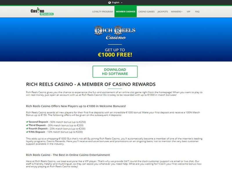 لقد كان كازينو Rich Reels يعمل منذ سنوات عديدة، ولكن يبدو أنه حقق نجاحًا كبيرًا بعد أن استحوذت عليه مجموعة Casino Rewards في عام 2011. يحظى الكازينو بتقدير كبير من قبل العديد من العاملين في صناعة المراهنات، حيث يتمتع الكازينو بنظام مصرفي ضخم، وهو معتمد في ولايتين قضائيتين، ويحمل شهادة eCOGRA للنزاهة والأمان.معلومات الكازينو