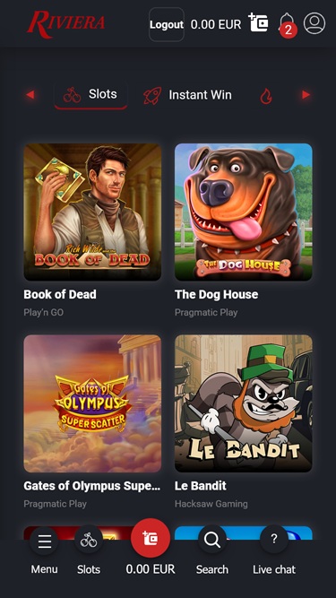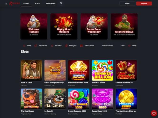 معظم الألعاب في محفظة كازينو ريفييرا هي ألعاب ماكينات القمار ، لذلك إذا كنت من محبي ألعاب ماكينات القمار ذات الذراع الواحدة، فقد يكون هذا هو المكان المناسب لك!