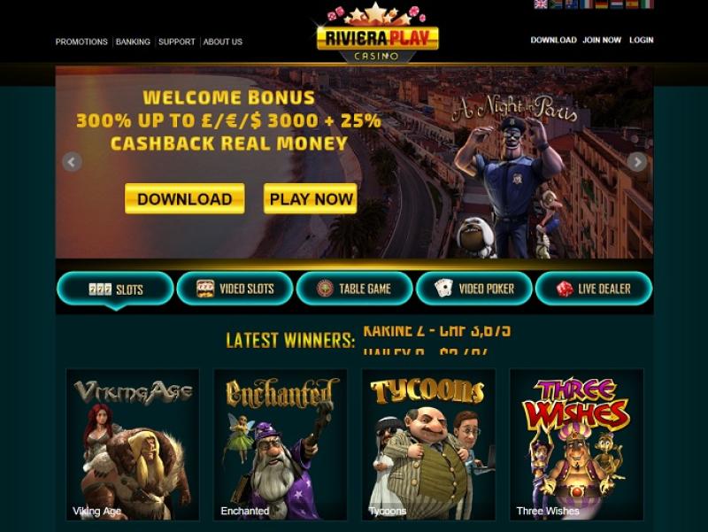 كازينو ريفييرا بلاي هو موقع مراهنات إلكتروني افتُتح عام ٢٠١٥، ويُدار من داخل ولاية كوراساو. يضم الكازينو سلسلة من ألعاب Rival وBetsoft، بالإضافة إلى مكافآت جيدة، إلا أنه يُعوّض عن ذلك بطء عمليات الدفع وضرورة دفع المبالغ النقدية على أقساط في حال الفوز بمبلغ مُحدد.