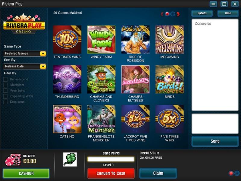 كازينو ريفييرا بلاي يعمل بنظام BetSoft, Rival and Vivo Gaming ، ويُقدم الكازينو برنامجًا قابلًا للتنزيل، بالإضافة إلى منصة لعب فوري عبر الإنترنت تُتيح لك اللعب عبر متصفح الإنترنت. كما يتوفر موقع كامل للهواتف المحمولة، يُتيح لك اللعب عبر هاتفك الذكي أو جهازك اللوحي.