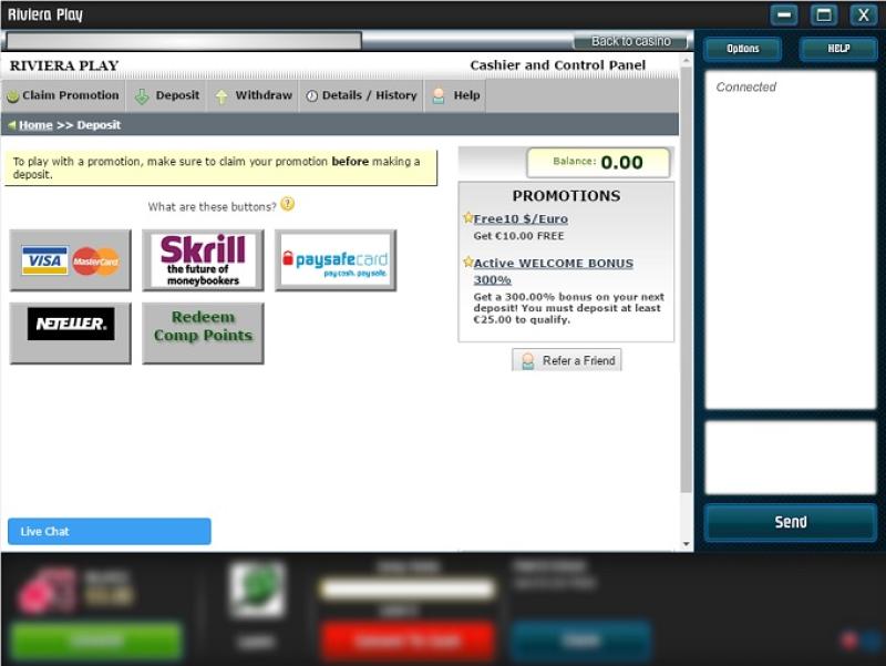 خيارات الخدمات المصرفية في Riviera Play Casino