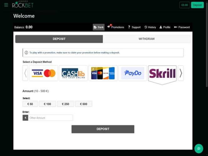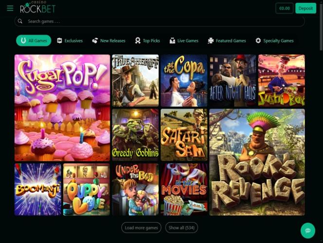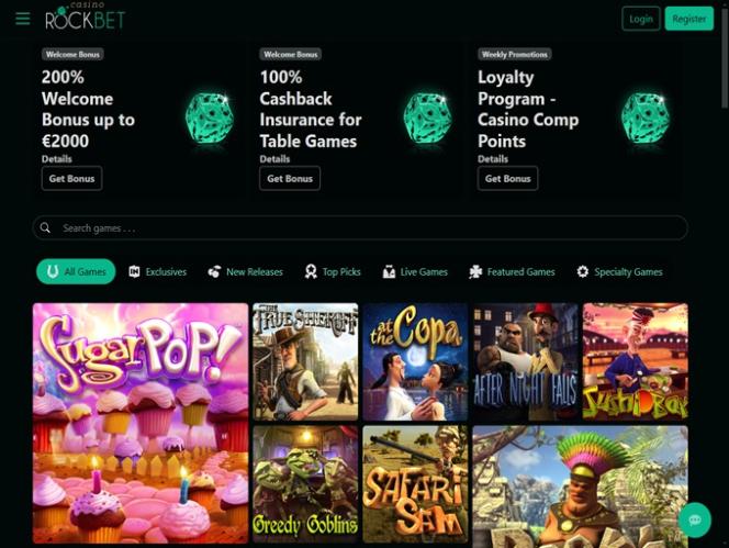 يتم تشغيل كازينو Rockbet بواسطة BetSoft, Rival, Saucify, Arrows Edge, Fresh Deck Studios, Qora Games, Genii and Dragon Gaming ، والذي يسمح للاعبين بالوصول إلى الألعاب من خلال برنامج قابل للتنزيل بالإضافة إلى نموذج اللعب الفوري.خيارات الخدمات المصرفية في Rockbet
