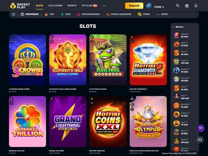على سبيل المثال، في كازينو روكيت بلاي، ستتمكن من تصفح تشكيلة واسعة من ألعاب الكازينو ومزودي البرامج. وقد حصلت العلامة التجارية على تراخيص من أكثر من 130 مطور برامج ، وهو عدد كبير بلا شك.