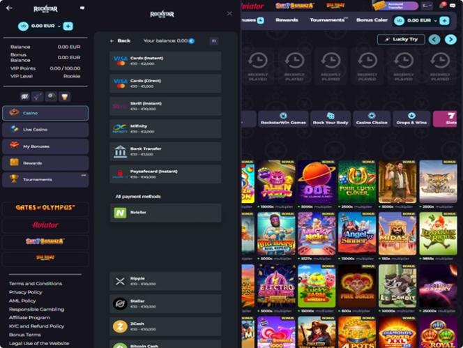 سيركز قسم المراجعة التالي على عروض كازينو RockstarWin الترفيهية وتنوع الألعاب. عند اختيار علامة تجارية محددة للكازينو، يجب مراعاة العديد من العوامل. ومع ذلك، فإن تنوع المنتجات وكميتها هما أكثر ما يهم اللاعبين.