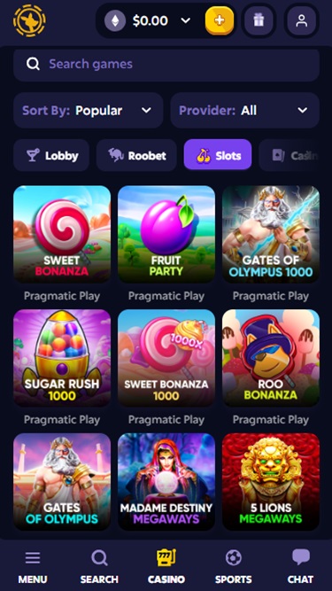 في الوقت الحاضر، يكاد يكون من المستحيل العثور على كازينو على الإنترنت لا يقدم ألعاب السلوتس، فقد اكتسبت هذه الألعاب شعبية هائلة على مر السنين. يقدم Roobet قائمة شاملة من ألعاب السلوتس بأموال حقيقية لتختار منها، وهذه بعض من أشهر خيارات اللاعبين: