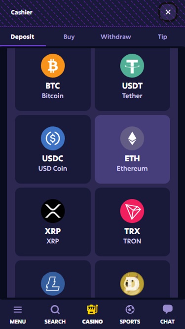 - يقبل الكازينو العملات الورقية والعملات المشفرة.