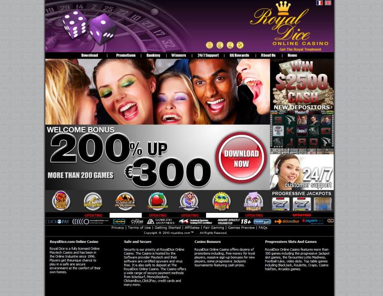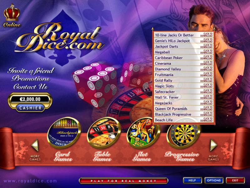 يعتمد كازينو Royal Dice على Playtech ، والذي يتوفر للعب من خلال برنامج قابل للتنزيل بالإضافة إلى نموذج اللعب الفوري الذي يمكن الوصول إليه من خلال موقع الكازينو على الويب.خيارات الخدمات المصرفية في Royal Dice