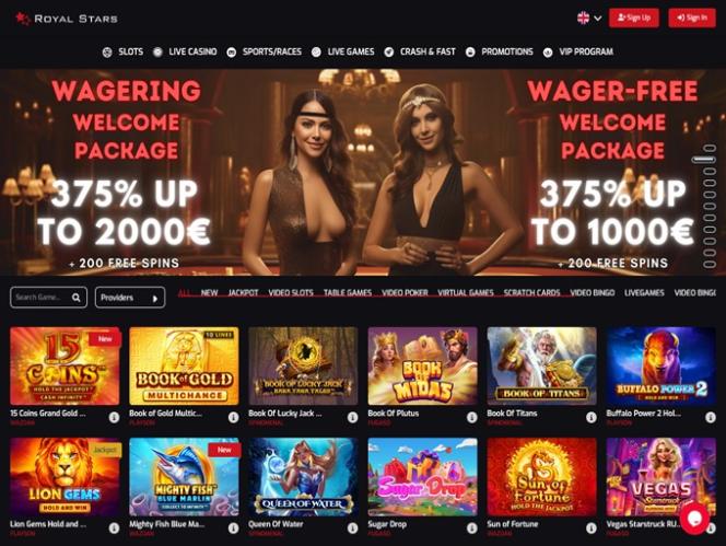 يضم الكازينو مجموعة ألعاب ضخمة مُقسمة إلى فئتين رئيسيتين: ماكينات القمار والكازينو المباشر ، بالإضافة إلى العديد من الأقسام الفرعية الجذابة لإبقاء اللاعبين مشغولين ومسليين. أوقات السحب وحدودها المناسبة والعروض الترويجية الجذابة تُضفي انطباعًا أوليًا رائعًا، لذا دعونا نتعرف على رويال ستارز بمزيد من التفصيل!