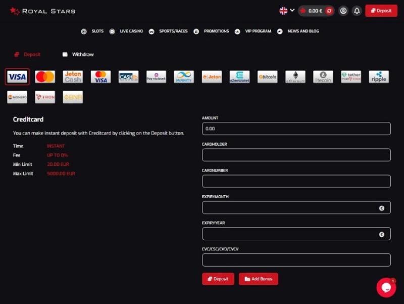 خيارات الخدمات المصرفية في Royal Stars Casino