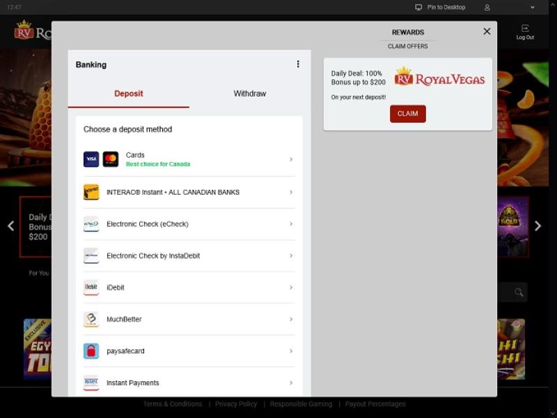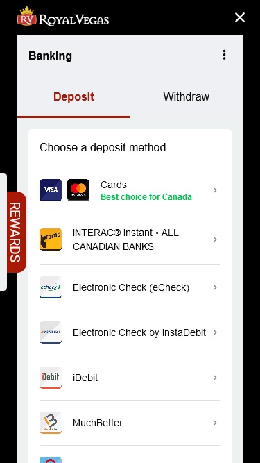 خيارات الخدمات المصرفية في Royal Vegas Casino