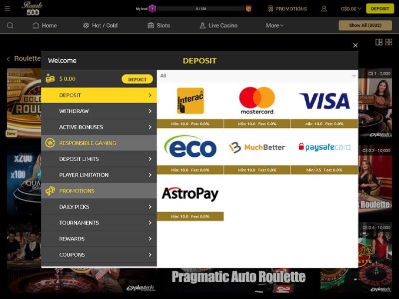 خيارات الخدمات المصرفية في Royale500 Casino