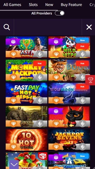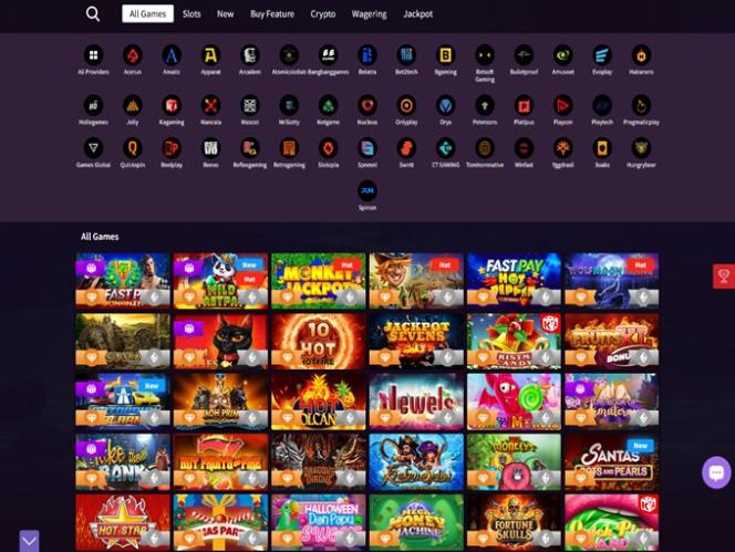 يمكن للاعبين تصفح فئات متعددة، بما في ذلك ميزات الشراء، وألعاب بيتكوين، وألعاب الجوائز الكبرى. هذا يُضفي تنوعًا هائلًا على الكتالوج، ويتيح للاعبين تجربة ألعاب جديدة ومثيرة بانتظام. ومن الجدير بالذكر أيضًا أن العلامة التجارية تُحدّث عروضها باستمرار بألعاب جديدة.