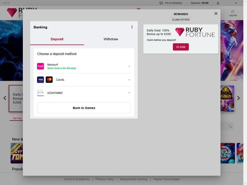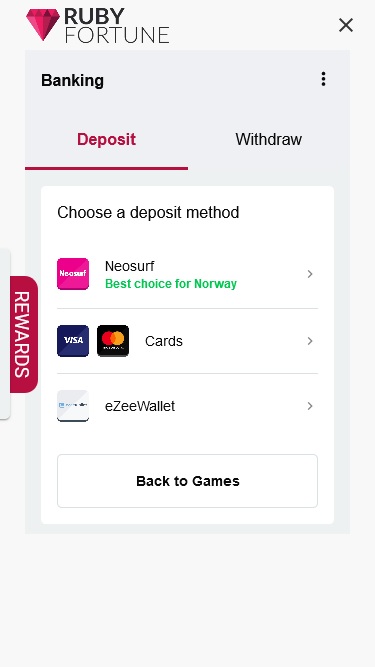 خيارات الخدمات المصرفية في Ruby Fortune Casino