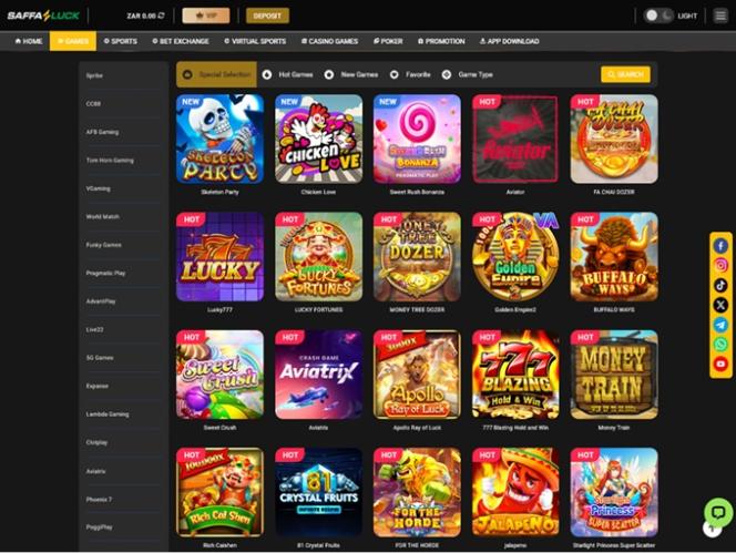 كما يوحي اسمها، فإن SaffaLuck هو كازينو على الإنترنت يقبل في المقام الأول اللاعبين من جنوب إفريقيا ويهدف إلى جذب جمهور كبير من خلال تقديم مجموعة مذهلة من ألعاب الكازينو وخيارات المراهنات الرياضية، بما في ذلك مئات من ماكينات القمار بأموال حقيقية ، وألعاب الانهيار الفوري، والموزعين المباشرين، وألعاب الطاولة، كل ذلك مع تقديم مجموعة قوية من العروض الترويجية والمكافآت.