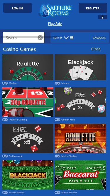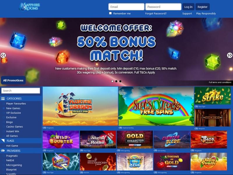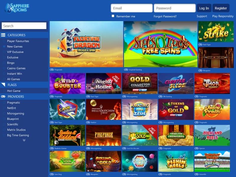 كازينو Sapphire Rooms يعمل بنظام Microgaming, Net Entertainment, Big Time Gaming, ELK Studios, EYECON, Habanero Systems, lightningboxgames, Rabcat, Yggdrasil, Realistic Games, Pragmatic Play, Red Tiger Gaming, IGT, Skillzzgaming, Triple Edge Studios, Northern Lights Gaming, Stormcraft Studios, All41 Studios, Gameburger Studios, Slot Factory, Neon Valley Studios, Golden Rock Studios, SpinPlay Games, GONG Gaming, Buck Stakes Entertainment, Games Global, Blueprint Gaming, Merkur Gaming, Nektan, NextGen, NYX Interactive, Inspired Gaming, SG Interactive, Scientific Games, Iron Dog Studio, Foxium, Just For The Win, PearFiction Studios, Slingshot Studios, Rocksalt Interactive, 4ThePlayer, Gamevy, Crazy Tooth Studio, Alchemy Gaming, ReelFeel Gaming, Snowborn Games, Hacksaw Gaming and Aurum Signature Studios ، وتُقدم ألعابه عبر منصة لعب فوري عبر الإنترنت، تتيح لك اللعب مباشرةً عبر متصفح هاتفك المحمول. كما يدعم الجهاز أجهزة الكمبيوتر، ما يسمح للاعبين باللعب عبر متصفحاتهم أيضًا.