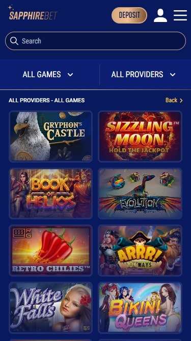 فيما يتعلق بكازينو Sapphirebet، سيستمتع اللاعبون بتصفح عدد هائل من الألعاب، حيث تحتوي مكتبته على آلاف الإصدارات الفريدة التي تختلف جميعها في آلياتها وميزاتها وموضوعاتها. وقد حصلت العلامة التجارية على تراخيص من حوالي 140 مطور برامج، وهو عدد ليس بالقليل.